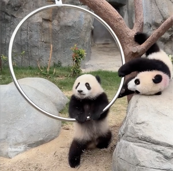 每隻大熊貓的黑眼圈形狀各不相同,像人類的指紋一樣獨特,這有助於它們在同類中相互識別。
